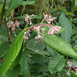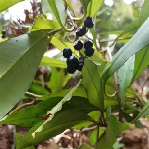 性状鉴别:根茎近圆柱形 九节龙分子化学式 。茎圆柱形,长短不一,直径约4mm,表面有铁锈色长柔毛。叶互生,叶片椭圆状披针形,上面中脉处有毛,下面密被铁锈色长柔毛,两面密布腺点,全缘或有微波状圆齿,坚纸质。有时可见伞形花序。气弱,味苦、涩。