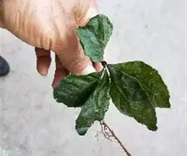 叶横切面:上、下表皮细胞各1列。栅栏细胞1列,海绵组织细胞排列疏松。中脉上方略下凹,维管束弯月形,外韧型,外侧有纤维环绕。薄壁组织间散有分泌腔。薄壁细胞含草酸钙簇晶。