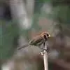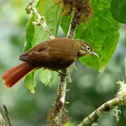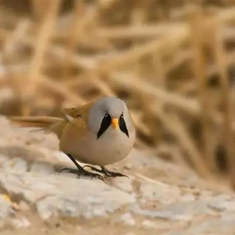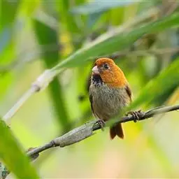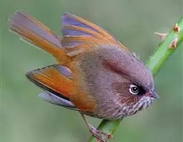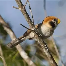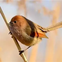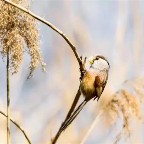 行为:留鸟。褐翅鸦雀主要栖息于林缘灌丛、竹丛、稀树草坡,以及芦苇丛和高草丛中。繁殖期间多成对或单只活动,其他季节多呈数只或10余只的小群。常隐蔽在灌丛和高草丛中活动和觅食,如无干拢,一般很少飞翔,因而不易看到,常常仅听见叫声而难以见于踪影。