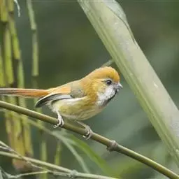 白眶鸦雀是莺科、鸦雀属小型鸟类,体长12-14厘米。嘴黄色、短而粗厚,头顶至后颈褐色沾棕具白色眼圈,…