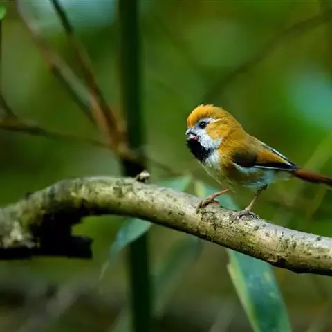 点胸鸦雀是莺科、鸦雀属小型鸟类,体长18-21厘米。头顶至枕橙棕色,嘴橙黄色、短而粗厚,脸皮黄色,…