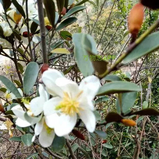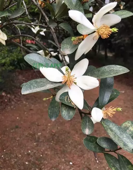 花梗粗短,长3-7毫米,有1苞片脱落痕;花白色,极芳香,花被片6-12(17)片,倒卵形,倒卵状椭圆形,长3-3.5厘米,宽1-1.5厘米,内轮的狭小,雄蕊长0.5-1厘米,花药长5-7毫米,侧向开裂,花丝白色,长3毫米,药隔伸出成1-3毫米的短尖头,雌蕊群及雌蕊群柄均被红褐色平伏细毛,雌蕊群卵圆形或长圆状卵圆形,长10-13毫米,心皮8-20,卵圆形,长3-4毫米,花柱长约1毫米,花柱具纵沟;胚珠5-6枚。聚合果通常仅5-9个蓇葖发育,蓇葖扁球形,宽5-8毫米,顶端具短尖,残留有毛;种子1-2粒。花期3-4月,果期8-9月。