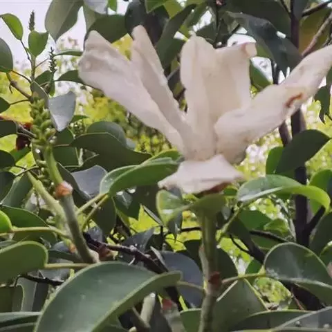 深山含笑是木兰科含笑属常绿大乔木。株高达20米;芽、幼枝、叶下面、苞片均被白粉;叶为革质宽椭圆形,…