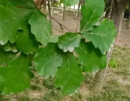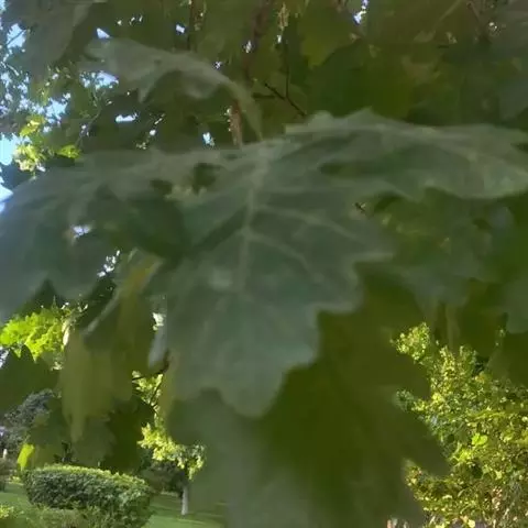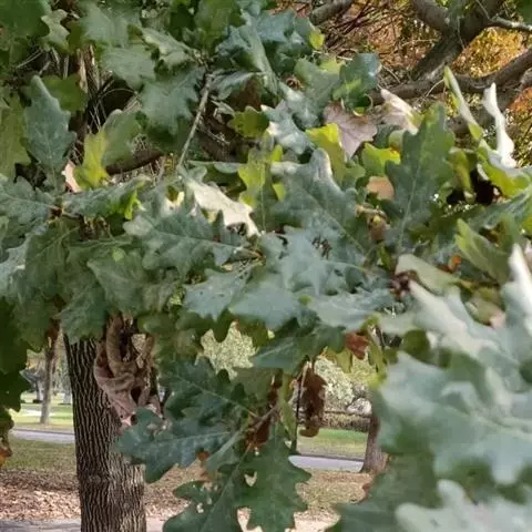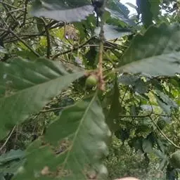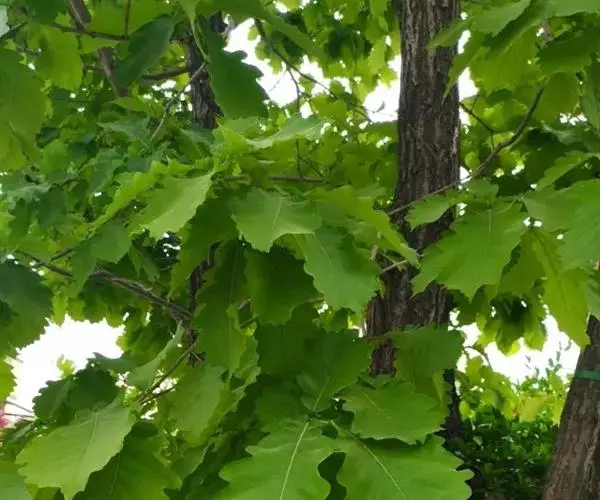 ◎ 落叶乔木,叶子长椭圆形,结球形坚果,叶可喂蚕;木材坚硬,可制家具,供建筑用,树皮可鞣皮或做染料。亦称“麻栎”、“橡”;通称“柞树”。