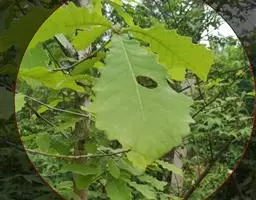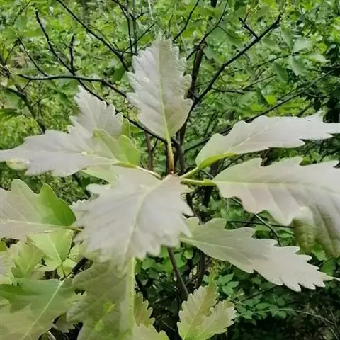 落叶乔木,叶子长椭圆形,结球形坚果,叶可喂蚕;木材坚硬,可制家具,供建筑用,树皮可鞣皮或做染料。亦称“麻栎”、“ 橡 ”;通称“柞树”。
