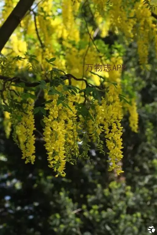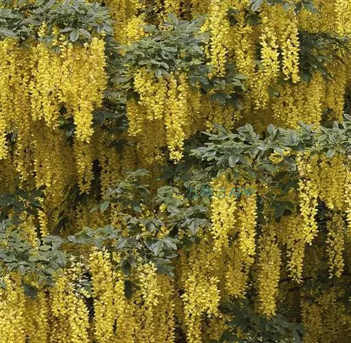 毒豆,春、夏之交开花,花期长,花色金黄鲜艳,花穗长似金链,通常用于行道树和长廊绿化, 形如黄色瀑布,壮观迷人。秋天叶色鲜艳,是优良的观叶树种。也可以孤植或群植,利用其柔软的枝条,塑造成不同的造型;或与其他彩色植物搭配,点缀在草坪或石旁,具有非常美丽的造景效果。也可以作为庭院树,美化居住环境。