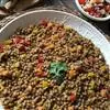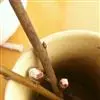 8.这个时间,将是蒜剁碎备用,将刚刚炸香的花椒擀碎。