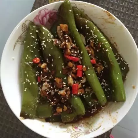10.另取一锅,加入食用油,放入干红辣椒,将辣椒炸出香味后关火,将烧好的热油和辣椒倒入蒜碎和花椒碎上,即可食用。