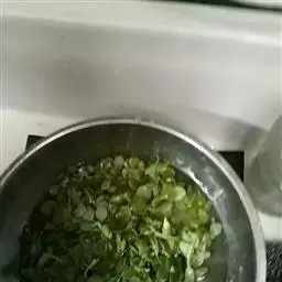 2.烧开一小锅水,洗净的豆芽放入开水中烫一下,捞入大盆中,按个人口味撒一点盐,备用。