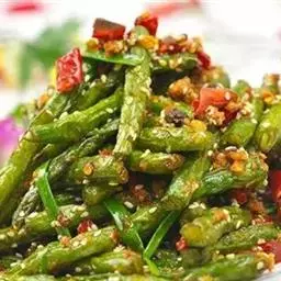 干煸四季豆是一道特色传统菜肴,属于川菜菜系,主要制作材料有四季豆、猪肉、红干辣椒等。干煸四季豆口味…