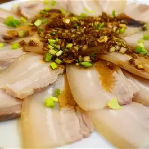 梅菜扣肉,汉族传统名菜,属客家菜 。制作材料有五花肉、梅菜、葱白、姜片等。