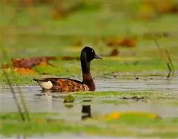 林鸳鸯(学名:Aix sponsa)是北美产颜色艳丽的小型树栖鸟。营巢于离地面15米的树洞中。体长约48厘米,雄雌均具独特羽冠。雄鸟羽冠有两条纵列的白色条纹,雌鸟羽毛上有白色眼环,体羽为煤灰色,幼雏于出壳的次日即可随雌鸟离巢,能从高达15米的巢跳到地面。雏鸟以水生昆虫和其他小生物为食,成鸟喜吃橡子或其他坚果。分布于欧亚大陆及非洲北部。