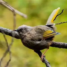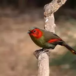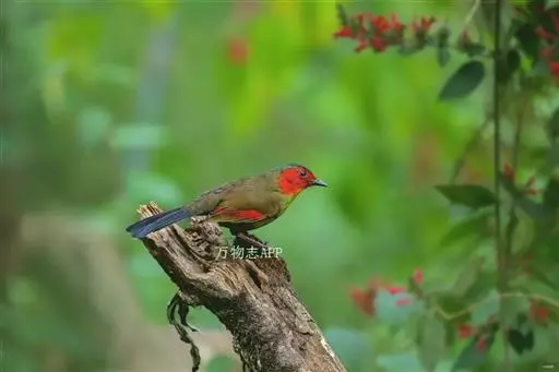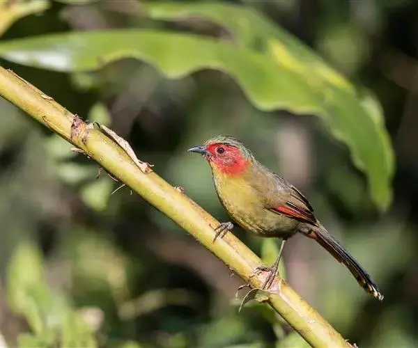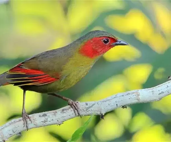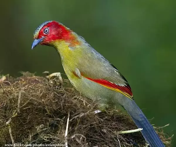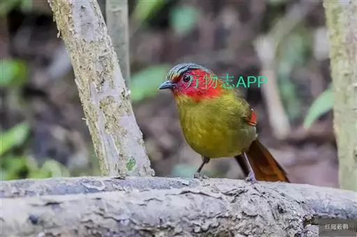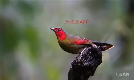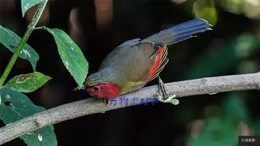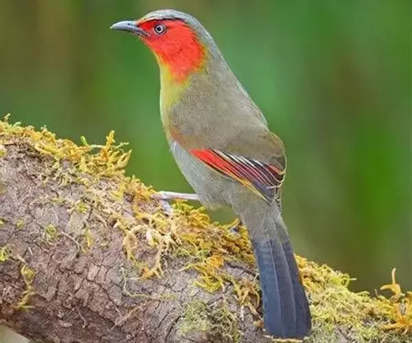 红翅薮鹛(学名:Liocichla phoenicea)是噪眉科、薮鹛属中型鸟类,体长21-24厘米。头顶灰褐色,头侧和颈侧赤红色,上体橄榄褐色,翅上具红色块斑,尾具红色或橙黄色块斑,下体灰色沾褐。虹膜褐色或红色,嘴黑色,脚暗褐色或淡灰褐色。