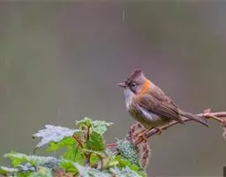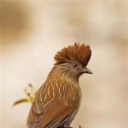 纹喉凤鹛:小型鸟类,体长13-16厘米。头顶和羽冠暗褐色或褐灰色,上体橄榄褐色,飞羽黑褐色,…