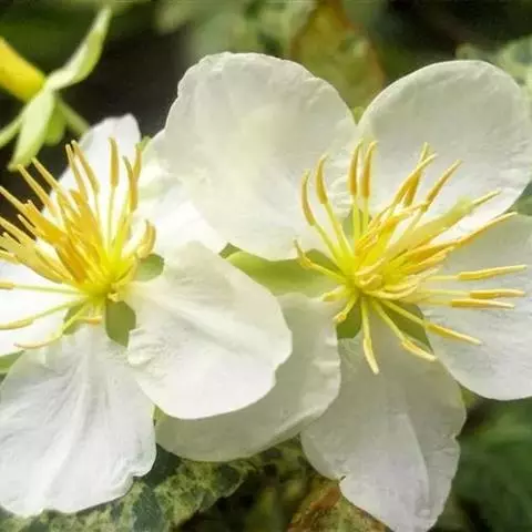 花3-7朵,倾斜或微下垂;苞片三全裂;花梗长2-7厘米;萼片黄绿色,长椭圆状卵形,长1.2-1.5厘米,宽6-8毫米,顶端微钝,疏被柔毛;花瓣瓣片与萼片同色,直立,倒卵形,比萼片稍长或稍短,顶端近截形,距直或微弯,长1.2-1.8厘米;雄蕊长达2厘米,伸出花外,花药长椭圆形,黄色;退化雄蕊白膜质,线状长椭圆形,长7-8毫米;心皮密被伸展的腺状柔毛,花柱比子房长或等长。