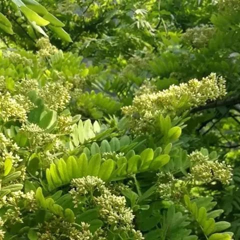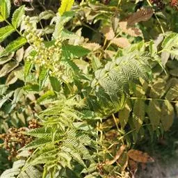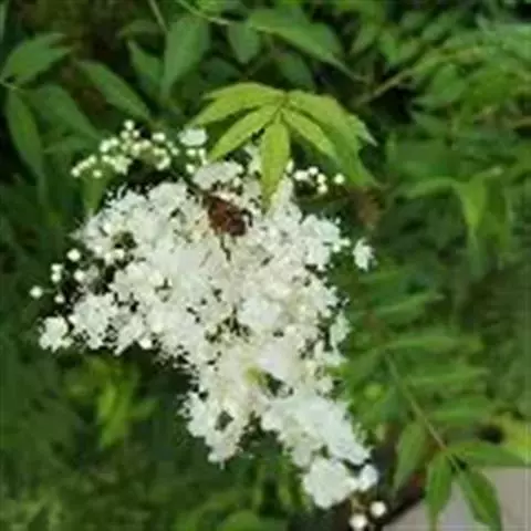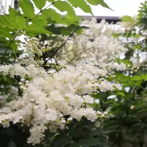 珍珠梅(学名:Sorbaria sorbifolia (L.)A. Br)是蔷薇科,珍珠梅属灌木,高可达2米,枝条开展;冬芽卵形,紫褐色,先端圆钝,具有数枚互生外露的鳞片。羽状复叶,小叶片对生,披针形至卵状披针形,先端渐尖,稀尾尖,基部近圆形或宽楔形,稀偏斜,边缘有尖锐重锯齿,上下两面无毛或近于无毛,羽状网脉,托叶叶质,顶生大型密集圆锥花序,分枝近于直立,总花梗和花梗被星状毛或短柔毛,果期逐渐脱落,苞片卵状披针形至线状披针形,先端长渐尖,全缘或有浅齿,上下两面微被柔毛,果期逐渐脱落;萼筒钟状,萼片三角卵形,先端钝或急尖,萼片约与萼筒等长;花瓣长圆形或倒卵形,白色;雄蕊生在花盘边缘;心皮无毛或稍具柔毛。蓇葖果长圆形,有顶生弯曲花柱,7-8月开花,9月结果。