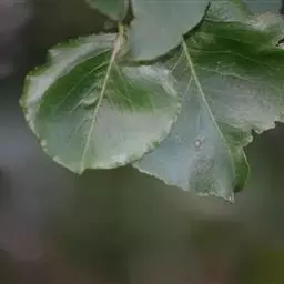 发病时叶片上会产生白色或灰白色面粉状物,严重时嫩稍卷曲,叶片凹凸不平,早期脱落。花小而不开放,花姿畸形卷曲、干枯。