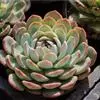紫珍珠是景天科石莲花属的多年生肉质草本植物。植株中小型;叶片肉质,匙形,呈莲座状紧密排列;叶片粉紫色,…