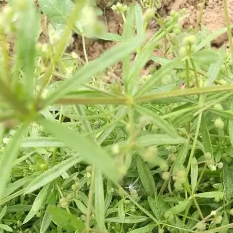 六叶葎 Ehrend. & Schönb.-Tem. ex R. R. Mill)是茜草科拉拉藤属的一年生草本。常直立,有时披散状,高10-60厘米左右,近基部分枝,有红色丝状的根;茎直立,具疏短毛或无毛;叶片薄,纸质或膜质,长圆状倒卵形、倒披针形、卵形或椭圆形顶端钝圆而具凸尖;聚伞花序顶生和生于上部叶腋,苞片常成对披针形,花冠白色或黄绿色,裂片卵形,雄蕊伸出;果近球形,单生或双生,密被钩毛;花期4-8月;果期5-9月。六叶葎分布于中国北、山西、陕西、甘肃、江苏、安徽、浙江、江西、河南、湖北等地,印度、巴基斯坦、尼泊尔、锡金、不丹、缅甸、日本、朝鲜、俄罗斯均有栽培。生于海拔920-3800米的山坡、沟边、河滩、草地的草丛或灌丛中及林下。六叶葎味甘,性平,具有清热解毒、利尿消肿的功效,可用于治疗尿路感染、赤白带下、痢疾、痛肿、跌打