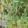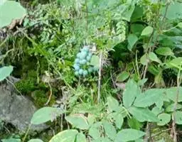 浆果球形或阔椭圆形,长10-15毫米,直径6-10毫米,熟后蓝黑色,微被白粉,果梗淡红色。种子4枚,通常三角形或肾形,红褐色。x=6。花期5-6月,果期7-8月。
