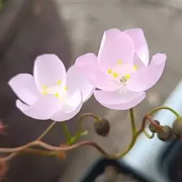 聚伞花序顶生,具花10-20朵,分枝或不分枝,花序轴和花梗被短柔毛;花梗长0.4-3.7厘米;外轮萼片披针形至线状披针形,长2.3-3.5毫米,宽0.7-1.2毫米,内轮萼片宽椭圆形至近圆形,长4-4.5毫米,宽3.8-4毫米;外轮花瓣狭倒卵形至阔倒卵形,长5-8毫米,宽2.5-5毫米;内轮花瓣狭椭圆形至狭倒卵形,长5.5-8毫米,宽2.5-3.5毫米,雄蕊长约4毫米;花丝扁平,长1.7-2毫米,花药长约2毫米;子房椭圆形,长3-4毫米,胚珠5-11枚,花柱极短,柱头盘状。