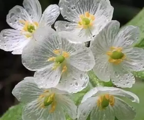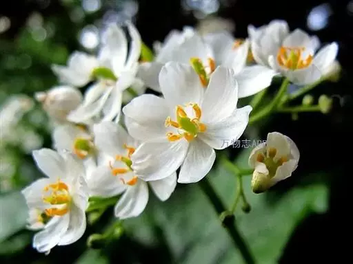花序顶生,具总梗,聚伞花序或伞形状花序,总梗无毛或疏被柔毛;花3数,辐射对称,具花梗;萼片6,2轮排列;花瓣6,2轮,白色;雄蕊6,与花瓣对生,花药底着,纵裂,花粉外壁明显具刺状纹饰;子房上位,1室,花柱极短或缺,柱头盘状,胚珠2-11。