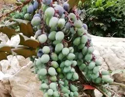 浆果球形或阔椭圆形,暗紫黑色,被白粉。种子红褐色,无假种皮。x=6。
