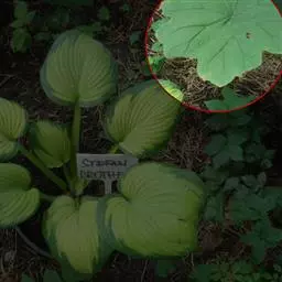 多年生草本,高40-80厘米。下部叶柄长7-20厘米,上部叶柄长(2.5-)6-13厘米长;叶片盾状着生,肾形或肾状圆形至横向长圆形,下部叶片长19-40厘米,宽20-46厘米,上部叶片长6.5-31厘米,宽19-42厘米,呈2半裂,每半裂具3-6浅裂或波状,边缘具不规则锯齿,齿端具尖头,上面疏被柔毛或近无毛,背面被柔毛。