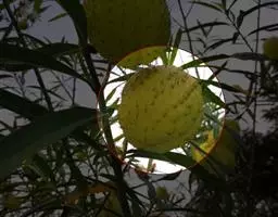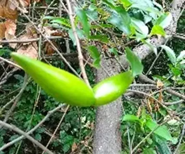 蓇葖广叉开,木质,椭圆状长圆形,顶端渐尖,基部膨大,长10-15厘米,直径2-3.5厘米,外果皮绿色,干时黑色,具纵条纹;种子纺锤形、扁平,长1.5-2厘米,宽3-5毫米,中部略宽,上部渐狭而延长成喙,喙长2厘米,轮生着白色绢质种毛;种毛具光泽,长2.5-3厘米。花期3-7月,果期6月-翌年2月。