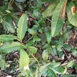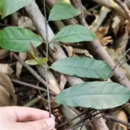 叶薄纸质,椭圆状长圆形或椭圆形,长3-10厘米,宽1.5-5厘米,顶端短渐尖或急尖,基部楔形,边缘全缘或有时略带微波状,叶面深绿色,叶背浅绿色,两面无毛;中脉在叶面扁平或凹陷,在叶背略凸起,侧脉通常每边6条,斜曲上升,叶缘前网结;叶柄短,长5毫米。
