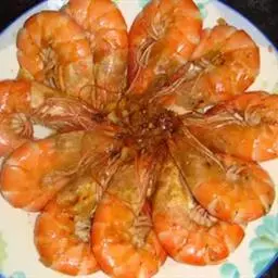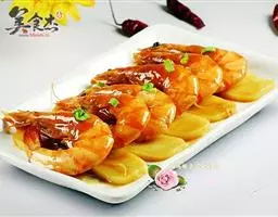 炒大虾是一道菜品,制作原料有大对虾、葱段、姜片等,用微火焖烤透,再将勺移正火,收汁微浓时放入味精,…