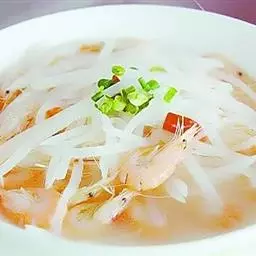 萝卜丝炖青虾是一道由青虾、青萝卜等做成的美食。