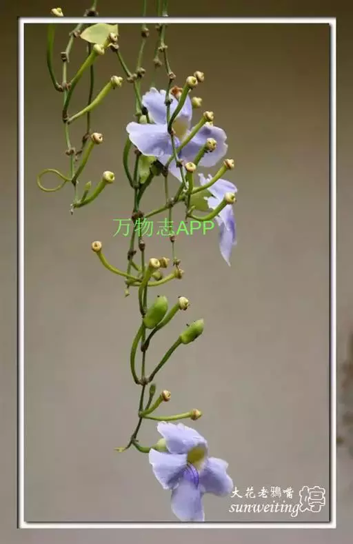 有句俚语说:“不怕生错命,就怕改错名”。可见取一个动听吉利的好名字多么重要。但眼前这种开漂亮的蓝色花儿的植物却有个让人啼笑皆非的名字——大花老鸦嘴,让人很容易联想起“乌鸦嘴”这类不吉利的词语。其实,只要您见到它那美丽动人的花儿,名字产生的不良印象随之改变。相反,比起个性模糊的名字,这个名字倒是很让人印象深刻。