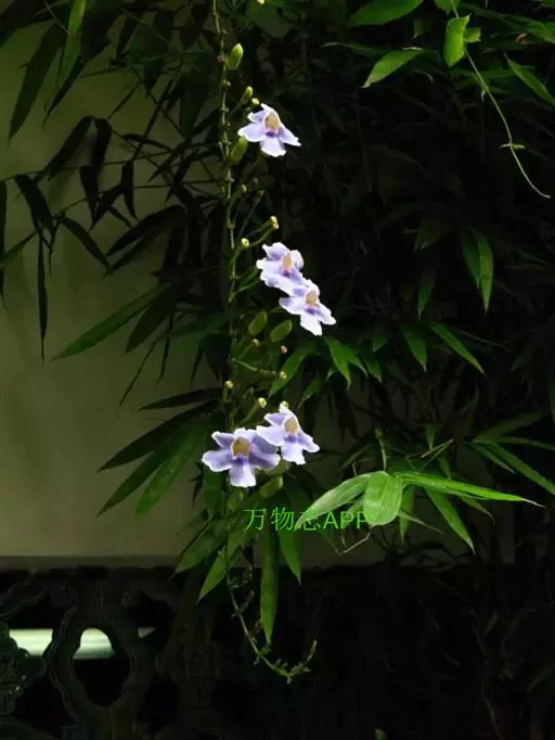 爵床科山牵牛属多年生常绿灌木,植株高2-3米,分枝多,枝条较柔软,幼茎四棱形,绿色至深褐色。蓝吊钟…