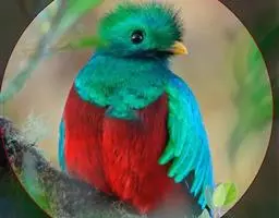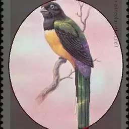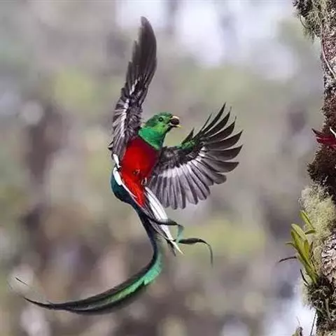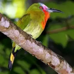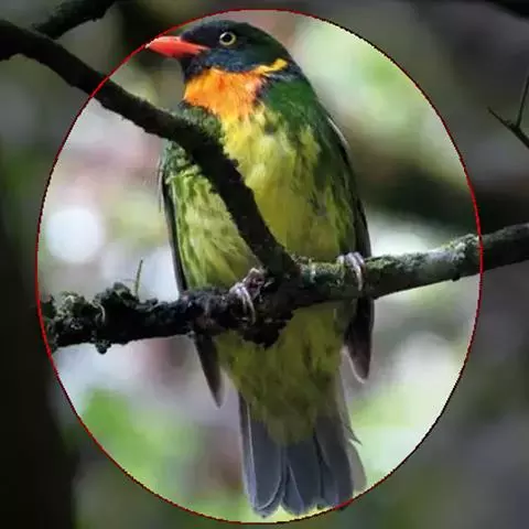 橙胸咬鹃:全长约28厘米。雄鸟头、颈橄榄绿色,上体及中央尾羽栗色;中央尾羽具黑色端,…