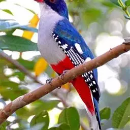咬鹃共有1科6属39种,属小型攀禽。异趾形,1、2趾向后,3、4趾向前。羽色艳丽,具金属光泽。…