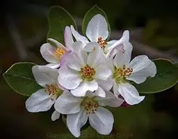 花序近伞形,有花5-8朵,花梗长2-3厘米,具柔毛;苞片膜质,披针形,早落;花直径4-5厘米;萼筒外面无毛或有白色绒毛;萼片三角卵形,长3毫米,比萼筒短或近等长,先端急尖,全缘,外面无毛或偶有稀疏绒毛,内面密被白色绒毛,萼片比萼筒稍短;花瓣卵形,长2-2.5厘米,宽1.5-2厘米,基部有短爪,白色,在芽中呈粉红色;雄蕊20-25(30)枚,花丝长短不等,长约花瓣之半;花柱5,稀4,基部有白色绒色,比雄蕊稍长。