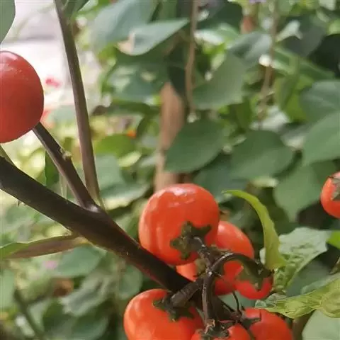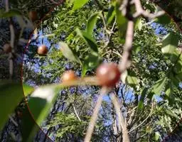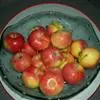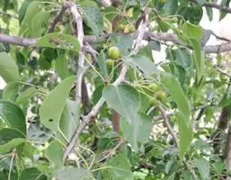 果实近球形,直径1.5-2厘米,黄色,萼片宿存,基部不下陷,梗洼隆起;果梗细长,先端肥厚,长3-4厘米。花期4-5月,果期8-9月。