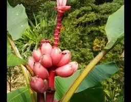 紫苞芭蕉形如一枝亭亭玉立、含苞待放的荷花,但却开在高高的芭蕉树上,这就是紫苞芭蕉。