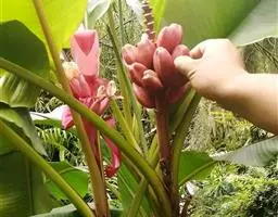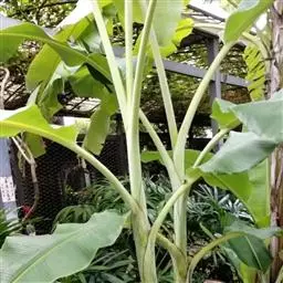 红蕉,假茎高1-2米。叶片长圆形,长1.8-2.2米,宽68-80厘米,叶面黄绿色,叶背淡黄绿色,…
