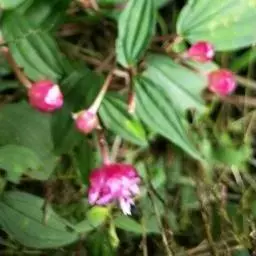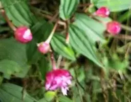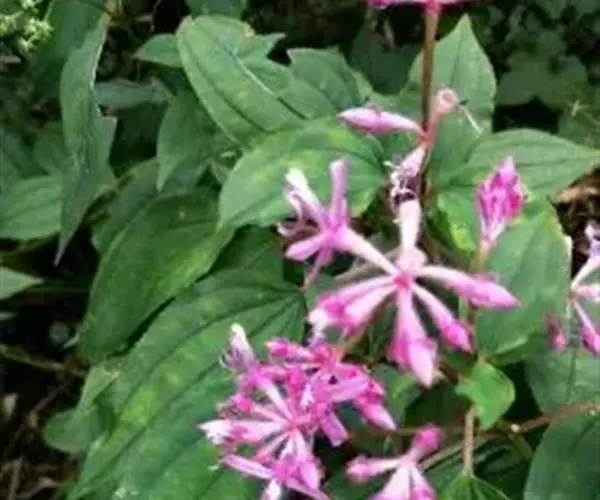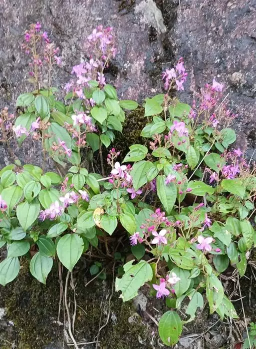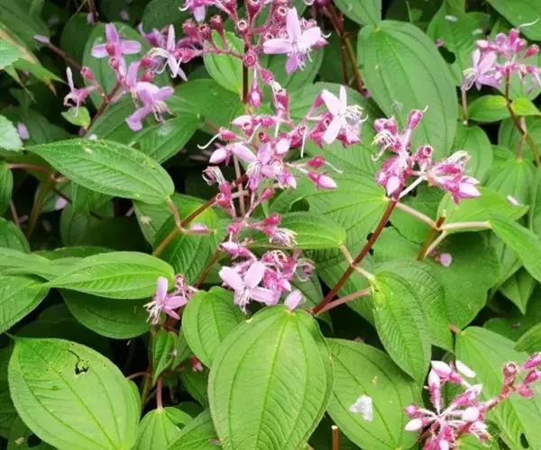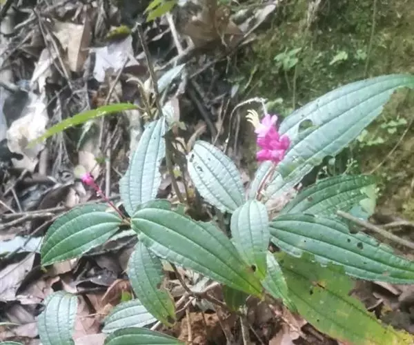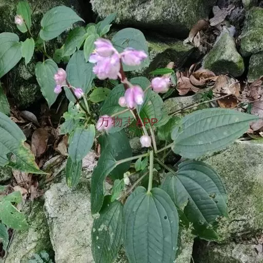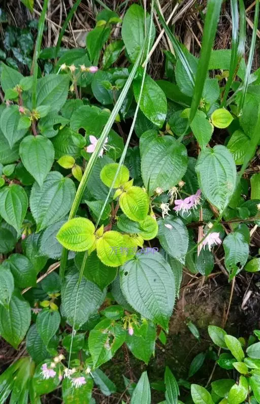 异药花(Fordiophyton faberi Stapf)别称:酸猴儿、臭骨草、伏毛肥肉草、峨眉异药花,野牡丹科野海棠属草本或亚灌木,高30-80厘米;茎四棱形,有槽,无毛,不分枝。叶片膜质,通常在一个节上的叶,大小差别较大,广披针形至卵形,稀披针形,顶端渐尖,基部浅心形,稀近楔形,侧脉不明显,背面几无毛或被极不明显的微柔毛及白色小腺点,基出,脉明显,隆起,侧脉及细脉不明显;宿存萼与蒴果同形,具不明显的8条纵肋,无毛,膜质冠伸出萼外,4裂。花期8-9月,果期约6月。