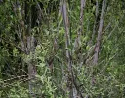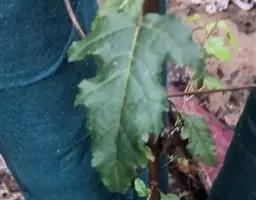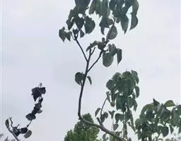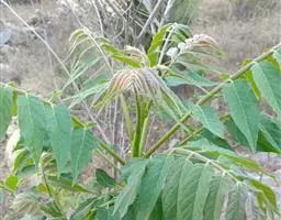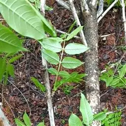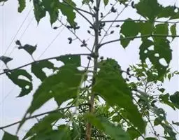 三、苗期管理和长势 幼苗出土后,初期生长较慢,抗性差要经常喷水,保持土壤湿度,并要及时清除杂草,锄草时及时趟土,尽量多培一些土,防止出现倒伏现象。当苗长到5厘米高时进行定苗,一般在灌透水后进行,按10~15厘米株间距去弱、病及小苗,保持苗木的健壮整齐,缺苗的地方选择雨天进行带土球移植补苗。6月初结合浇水追施尿素,每亩15kg,7月中旬再每亩追施尿素10~15kg,后期适当控水。若发现刺蛾等害虫时,可喷2.5%的溴氰菊酯4000倍液进行防治。当年苗高可达1~1.5米,第二年春天可进行分植。
