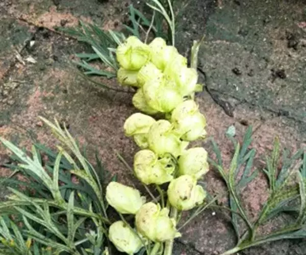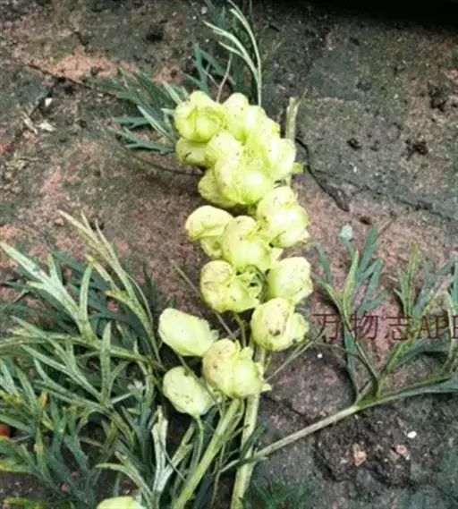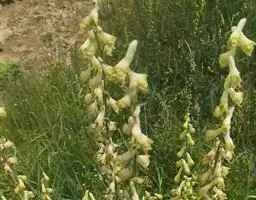 如果种植密度很大,在雨季、空气湿度大,容易发生斑枯病。此病危害叶片,导致植株提前死亡。严重影响块根和种子产量,所以应在雨季病害发生前,按说明喷洒速克灵或代森锰锌3—4次,每次间隔10天左右,可防治病害发生。 黄花乌头三年生植株比较高大,可达1—1.5米,而且穗状花序十分巨大,植株首先从基部开始木质化,遇大风或降雨极易倒伏折断,给生产造成损失。为了减小损失,栽培上可在床间或每隔3根垅种植一行玉米,可减轻大风危害,防止倒伏。