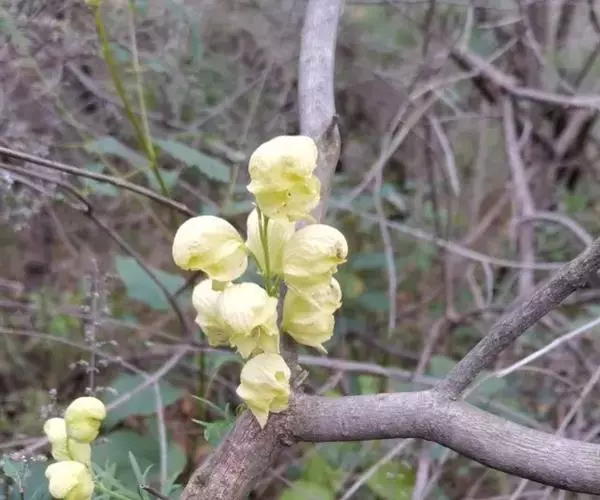 黄草乌:毛茛科,乌头属多年生草本植物,块根椭圆球形或胡萝卜形,茎缠绕,叶片坚纸质,五角形,…