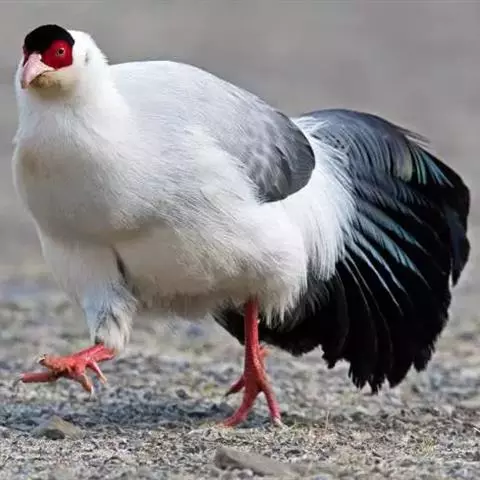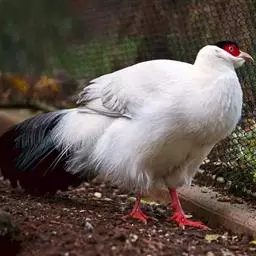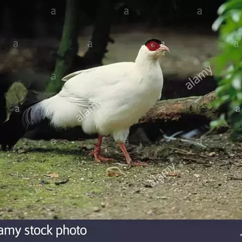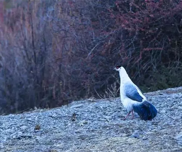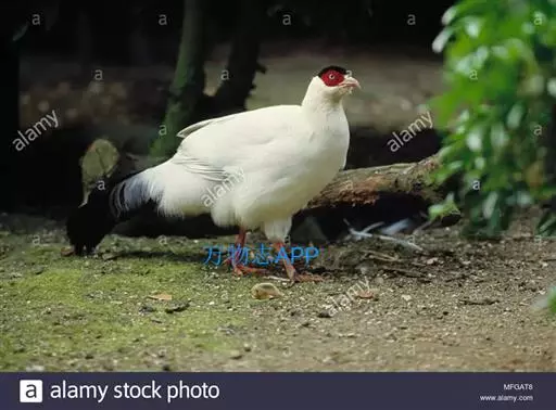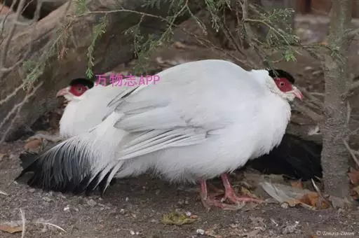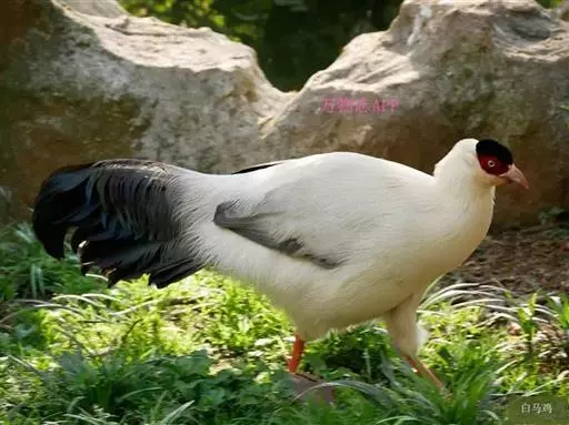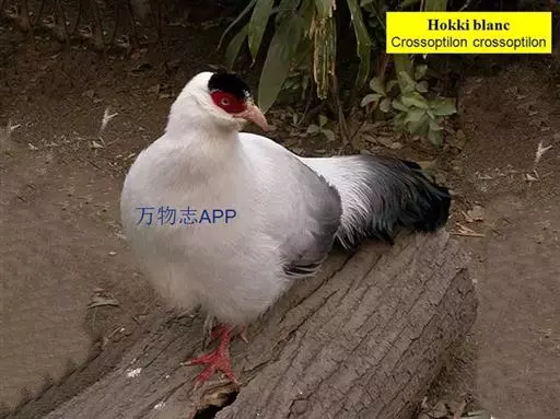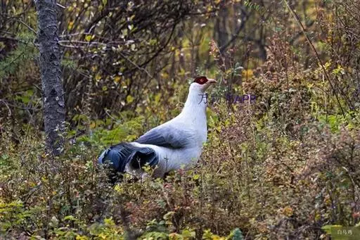 白马鸡(学名:Crossoptilon crossoptilon)共有四个亚种。是大型雉,体长80-100厘米。通体大都白色,头侧绯红色;头顶具黑色短羽,耳羽簇白色,呈短角状。胸淡灰色或白色,飞羽灰褐色,尾羽特长,大都辉绿蓝色,末端沾紫色光泽,羽枝大都分离,披散而下垂。