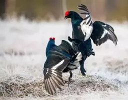 冬季如果没有干扰,马鸡群总是栖宿在固定的夜栖地。个体强壮的“哨鸡”栖宿于冷杉树最高处。当东方微微现出一缕曙光,“哨鸡”会发出响亮的叫声,紧接着一呼百应,群栖在树上的众马鸡开始了雄壮有力的“大合唱”。马鸡叫声响亮、高亢,像豪放粗犷的陕西秦腔和河北梆子,掷地有声,声传数里。马鸡雄壮的“合唱”迎来了东方火红的朝霞。迎着灿烂的阳光,“领唱”的哨鸡一级级盘旋着跳下树枝,昂然走在最前面,直向日间的觅食地前进。众马鸡相跟在后,一只紧跟一只,排成一列纵队鱼贯而行,地面的枯叶被踩得“哗哗”作响。哨鸡一边走一边警惕地环顾张望,众马鸡一边走一边啄食两旁的草叶。天长日久,马鸡夜宿地与觅食地之间踩踏出一条窄窄的路,称为“马鸡路”。中午阳光灿烂时,众马鸡开始进行暖暖的日光浴和沙浴,如果没有干扰,宁静安详的沙浴可以持续2个多小时。如果出现敌情,哨鸡立刻发出警报,众马鸡立刻四散。如果是天空出现盘旋的猛禽,马鸡们俯下身子与地面的草木融为一体;如果是地面出现追杀的动物,马鸡们拔腿向山脊奔跑,迫不得已时,由高处向山谷滑翔。敌情解除之后,哨鸡站在林子的空旷地高声呼唤半个小时,众马鸡就能集结成群。 午休之后,阳光渐渐暗淡,气温不断下降。下午3点以后,依旧由哨鸡打前阵反方向由觅食地向夜宿地行进。队伍行进的速度与目的地远近有关,无论路程长短,马鸡群都必须在夜幕笼罩之前到达夜栖地。如果路程短,众马鸡走走停停,边走边寻觅食物;如若远,哨鸡快步走在最前,众马鸡目不斜视紧紧跟上。在夜栖地上树歇息之前,在哨鸡的带领下,群鸡开始晚“合唱”,一边高唱,一边找到自己的栖宿位置。众马鸡上树安顿下来以后,顿时鸦雀无声,直至破晓。