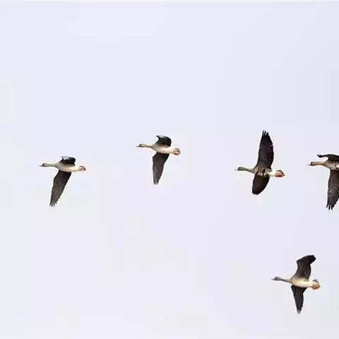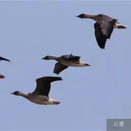 豆雁,雁形目鸭科。成鸟头、颈、背灰褐色,带淡黄色羽缘;尾上覆羽白色,尾羽黑褐色带白端,…