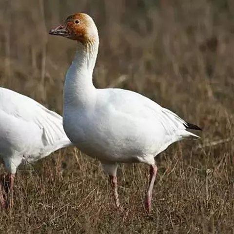 雪雁是鸭科雁属鸟类,雁属中体形大,个体重的鸟类。羽毛洁白,翼角黑色。飞行时双翼拍打用力,振翅频率高。…