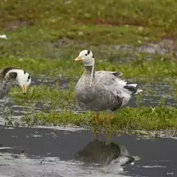 斑头雁是雁形目鸭科雁属鸟类,又称白头雁、黑纹头雁。通体大都灰褐色,头和颈侧白色,…