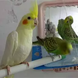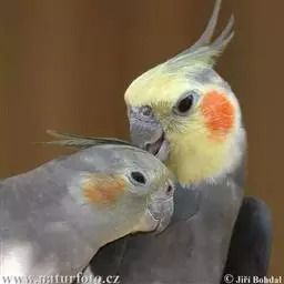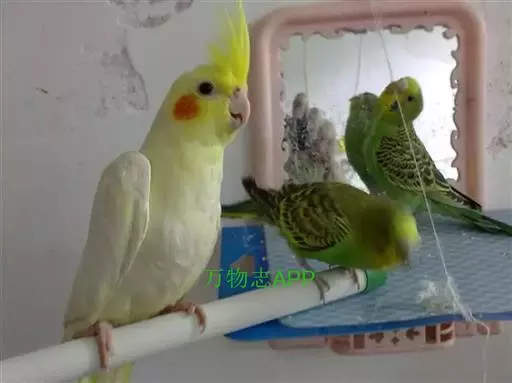 鸡尾鹦鹉(学名:Nymphicus hollandicus):体长32-33厘米,翅膀长度约16-18厘米,野生的顶冠长4-6厘米,饲养驯养的冠毛长4-11厘米。体重80-100克寿命20年,已知的活得最久达36周岁。是凤头鹦鹉科中的一种小型鹦鹉。有一个竖立在脑袋上的顶冠。羽毛一般是中度灰色的,身体下部颜色比较浅,橙色脸颊,翅膀上有白色的大羽斑。没有亚种,有许多变种,较常见的是灰色、白色、珍珠等品种;以颜色区分达18种不同的变种,另有少数一些不确定特例。
